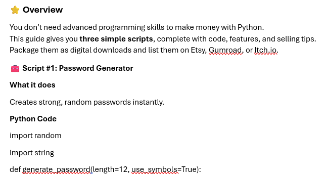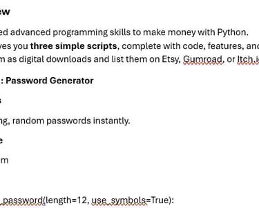 Unlock a simple, beginner‑friendly way to make money with Python — even if you’re just getting started. This guide gives you three profitable Python scripts, complete with code, explanations, and selling strategies you can use right away.